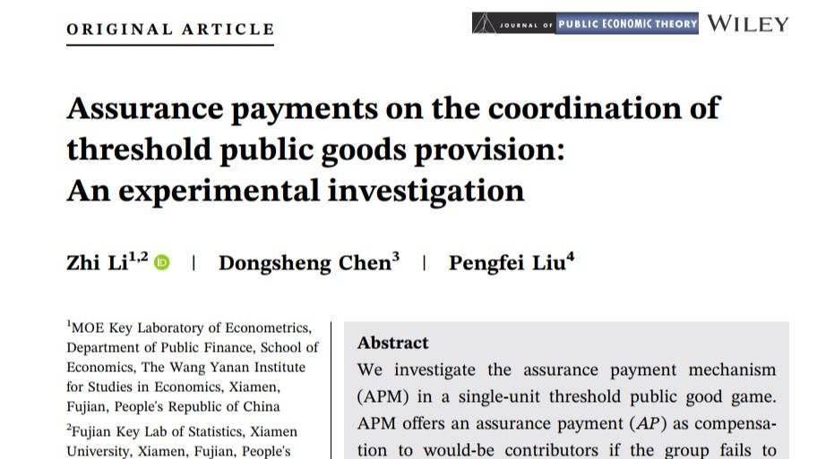 近日,厦门大学经济学院经济研究所和王亚南经济研究院(WISE)岳阳副教授与中国社会科学院大学经济学院在读博士生田文文合作完成的学术论文“机关事业单位养老保险改革的福利效应:不确定性与消费的视角”在经济...